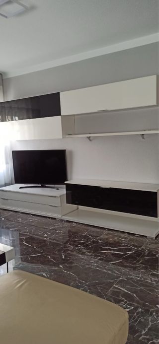 Se vende conjunto de salón completo, ideal para amueblar tu hogar. Incluye mesa de comedor Mueble de TV: Con gran capacidad de almacenaje (puertas/cajones). Medidas: • Estantería/Vitrina: Ideal para libros o decoración. • Aparador/Mueble auxiliar: [Breve descripción]. Con hueco chimeneq • Mesa de comedor: [Menciona si es A juego con el resto del mobiliario. Estado: bien cuidado. Madera de alta calidad y alta gama
