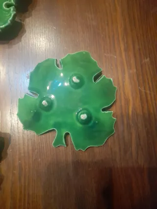 Conjunto de siete platos decorativos con forma de hoja de parra. - Diseño vintage. - Acabado brillante.