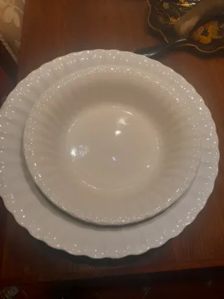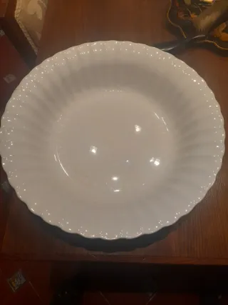Elegante bandeja de cerámica de la reconocida marca Cartuja de Sevilla. Su diseño clásico y acabado la hacen perfecta para cualquier ocasión. - Borde festoneado con detalle. - Superficie lisa y brillante.