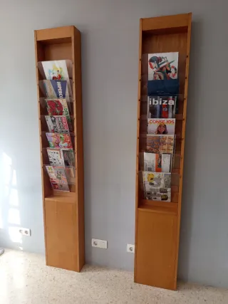 Práctico revistero de madera con varios compartimentos para organizar tus revistas. - Diseño vertical. - Acabado en madera natural. - Organizador moderno Medidas: Alto 2'10 cm Ancho 35 cm Fondo 12'5 cm Revistas organización peluquería barbería café bar estilismo tienda oficina salón comedor gestoría mesa sillas cocina piso cortijo minimalista aire mueble decoración deco bricolaje