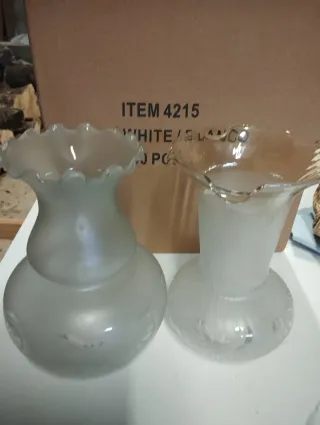 Conjunto de dos tulipas de cristal con diseños diferentes. - Una tulipa es translúcida con un diseño floral grabado en la base. - La otra tulipa es transparente con un borde ondulado y un diseño acanalado en la base.El conjunto por 7 euros