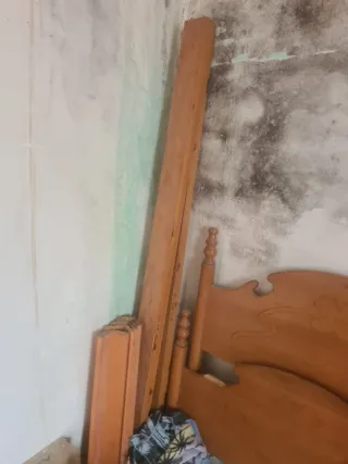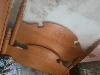 Estructura de cama individual de madera con un diseño clásico y detalles tallados. - Medida: 105 cm. - Acabado en madera natural. - Cabecero con motivos florales. El piecero tiene una muesca en la madera que se aprecio en las fotos ,se puede comprar unicamente el cabecero que esta en perfecto estado ,madera de muy buena calidad.