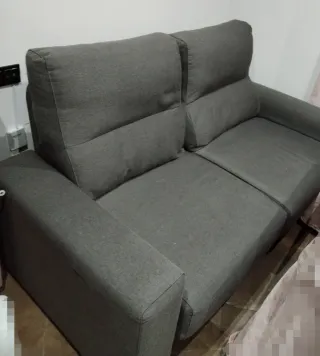Conjunto de sofás de dos y tres plazas, perfectos para tu salón. Su diseño moderno y cómodo los hace ideales para el día a día. - Tapicería de tela. - Color gris neutro.