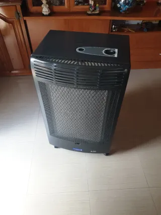 Estufa de gas portátil, ideal para calentar espacios. - Diseño moderno en color negro y gris. - Fabricada con materiales resistentes como metal y plástico. Bombona no incluida.