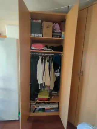 Armario de cuatro puertas en buen estado. Un mueble espacioso y funcional para tu hogar. - Diseño clásico. - Tiradores metálicos.