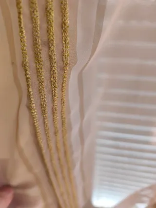 Dos paneles de cortina visillo con un diseño elegante y sutil. Ancho 135cm cada panel Altura 240cm y 8 cm del colgador - Color: beige y blanco. - Material: tela.
