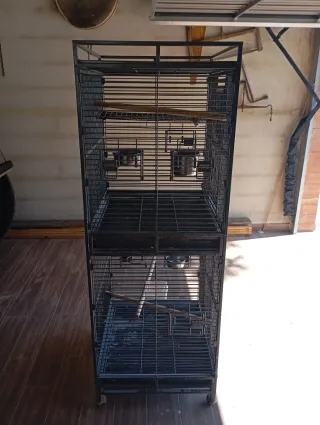 Jaula grande de dos niveles para pájaros, ideal para tener a tus mascotas cómodas y seguras. - Estructura metálica resistente. - Diseño de doble compartimento. - Puertas de acceso frontal. - Bandejas extraíbles para facilitar la limpieza. -Incluye comederos y bebederos.