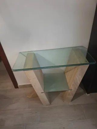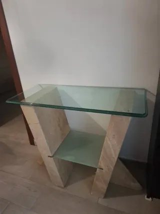 Mesa recibidor mármol y cristal