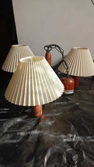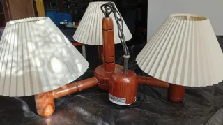Elegante lámpara de techo con un diseño único. - Base y brazos de madera. - Pantallas de papel plisado.