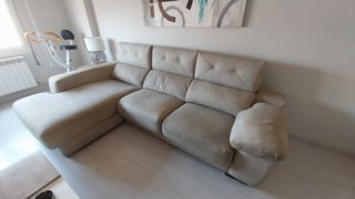 Sofá de tres plazas y Sillón Relax, con un diseño moderno y elegante. - Tapicería de piel. - Color principal beig Medidas del Sofá: - Ancho. 258 - Fondo. 103 - Alto. 93 Medidas del Sillón: - Ancho. 108 - Fondo. 103 - Alto. 93 En las fotos se aprecia algún desperfecto. No envío. Recogida en domicilio. Se puede ver sin compromiso.