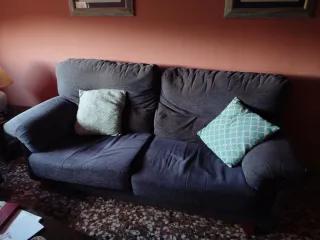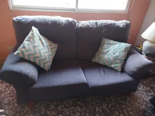 Regalo conjunto de sofás de tela en color gris azulado. Incluye un sofá de 3 plazas y un sofá de 2 plazas. Solo necesito que seas tu quien los recoja. - Sofá de 3 plazas. - Sofá de 2 plazas. - Tapicería de tela.