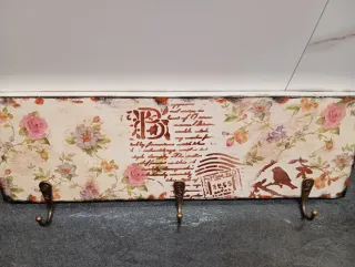 Este colgador de llaves está hecho a mano con un diseño único. Estilo shabby chic. - Decoración con flores y motivos postales. - Acabado envejecido en los bordes. Colgadores de metal color bronce con gran resistencia. En la parte de atrás lleva dos solapas para poder colocar en la pared. Envío por correos.