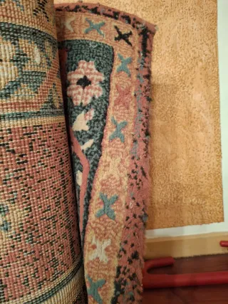 Alfombra de estilo antiguo, con un diseño que evoca calidez y tradición para tu comedor. A recoger en la romana ,alicante - Tonos predominantes en naranja y rosa. - Fabricada en tela de calidad.