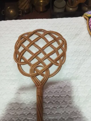 Sacudidor de alfombras antiguo con un diseño trenzado. - Fabricado en mimbre. - Detalle metálico en el extremo inferior. - Elaborado diseño en la parte superior. Ideal decoración o usar como tal