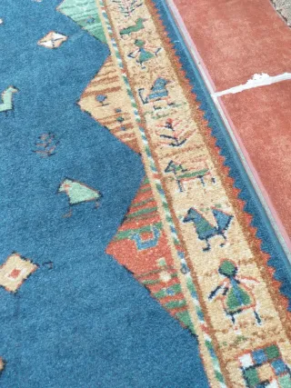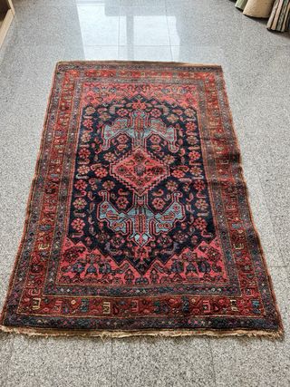Elegante alfombra antigua con un diseño intrincado y colores vibrantes. - Tonos predominantes de azul y rojo. - Ideal para añadir un toque clásico a cualquier estancia. - Calidad winsor. - Medidas: 150x100 cms. Se recomienda limpieza, pues acumula polvo de estar guardada en armario. Último precio o se vende por vinted!