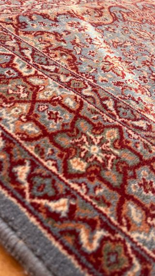 Elegante alfombra de estilo clásico con un diseño intrincado y colores vibrantes. Nunca se ha usado. Quitaron las etiquetas de las fotos el otro día porque se lavo a fondo para venderla. Siempre ha estado bien guardada por eso no tiene ningún daño. - Tonos dorados y rojos predominantes. - Patrones florales y ornamentales. - Borde detallado. 170cm x 240cm