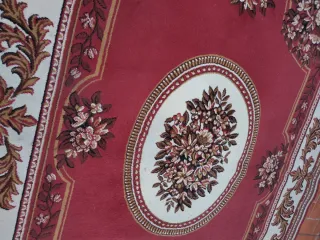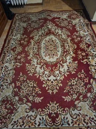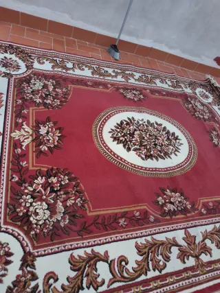 Clásica alfombra de estilo clásico con un diseño intrincado y colores vibrantes. Obviamente no es nueva, en la esquina superior izquierda esta más oscura porque necesitaría una limpieza, que corre ya a cuenta del comprador/a . Si te interesa, contáctame. - Diseño floral central. - Borde decorativo. - Tonos rojos y beige predominantes.