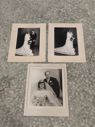 Tres preciosas fotografías antiguas en blanco y negro de bodas. Son imágenes nostálgicas y llenas de encanto Muestran a parejas en su boda. Ideales para decorar o como colección Medida sin paspartú: 29'2*19'2cm 29'5*23'7cm VDVzero antiguo antigüedad retro vintage cámara foto postal nupcial matrimonio vestido diadema anillo alianza oro plata corona altar iglesia capilla retrato cuadro marco Pedro Durán subasta Luis xv bohemia mármol zara kave home aplique bambú atrezo cine serie nostalgia velo ramo urna alfombra tapiz imperio álbum de postales telenovela libro flor bodegón pan de oro estantería jarrón Limoges Sévres Alcora Cartuja