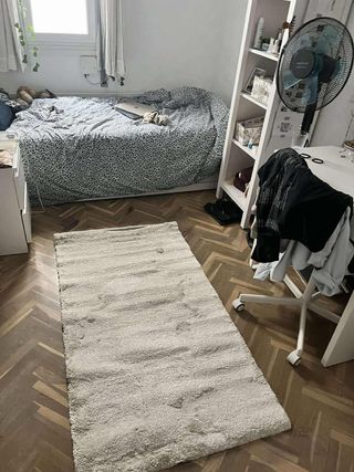 Alfombra de Ikea modelo Sporup, ideal para añadir un toque acogedor a tu hogar. - Materiales: poliéster y tela. - Medidas: 133x195 cm.