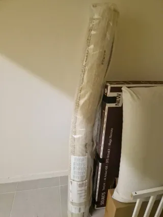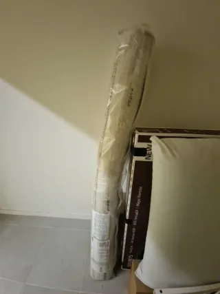 Alfombra de Ikea en color beige. - Material de tela. Algunas manchitas que se van sin problema.Hay que aspirar y limpiarla.