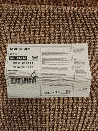 Alfombra totalmente nueva sin abrir. Modelo TIPHEDE de Ikea, en tela y tonos negro y natural. Con unas medidas de 155x220 cm. Incluyo también la base antideslizante que está totalmente nueva también.