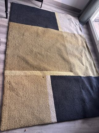 Alfombra de tela con un diseño moderno y versátil. - Tonos neutros que combinan fácilmente. - Textura suave al tacto. - también dispongo de otra alfombra igual de medias 3 m x 2 m consultar interesados