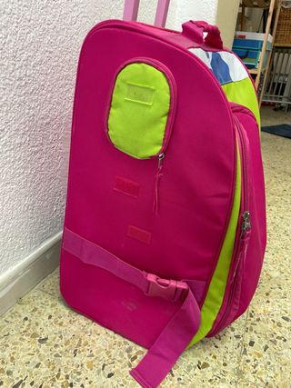 Maleta con ruedas, perfecta para viajes de las niñas - Diseño divertido con estampado de burbujas. - Asa extensible para facilitar el transporte. - Bolsillo frontal con cremallera. - Tiradores de cremallera con el logo de la marca. - el frontal sirve de alfombra -2 Ruedas - bolsillos en ambos laterales con cremallera -3 estantes interiores desmontables - 1 cartera bolso rosa a juego - 1 bolsa rosa y plástico transparente con cremallera - 1 funda gris imaginarium - 35 cm ancho x 57cm alto x 30 cm fondo