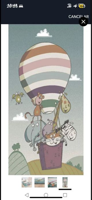 Alfombra infantil con un divertido diseño de animales en un globo aerostático. Ideal para la habitación de los más pequeños. prácticamente sin uso - Diseño de animales y globo aerostático. - Pelo corto, fácil de limpiar.