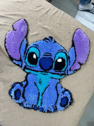 Alfombra decorativa hecha a mano con el personaje Stitch. - Diseño único y colorido. - Ideal para habitaciones infantiles o como pieza decorativa. - Tacto suave y agradable.