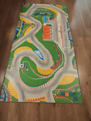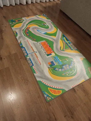 Alfombra de vinilo con diseño de circuito de carreras para niños. Ideal para jugar. - Diseño de circuito de carreras. - Material de vinilo. - Motivos infantiles.