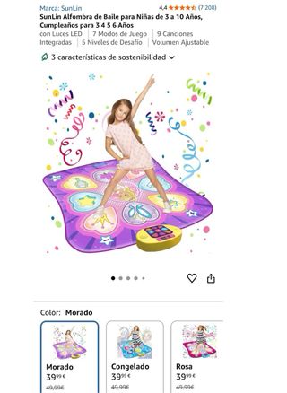 Alfombra de baile interactiva Dancing Challenge de Sunlin. Ideal para que los niños se diviertan y hagan ejercicio. - Superficie sensible al tacto. - Luces LED parpadeantes. - Marcador LED. - Volumen ajustable. - 5 niveles de dificultad. - 3 modos de juego. - Sonido de teclado. - 9 canciones de demostración.