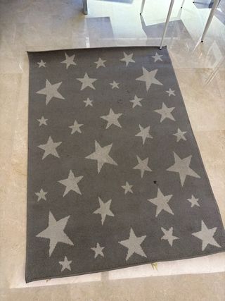 Alfombra con un divertido diseño de estrellas en tonos grises y blancos. Añade un toque acogedor a cualquier habitación. - Diseño de estrellas. - Base antideslizante.