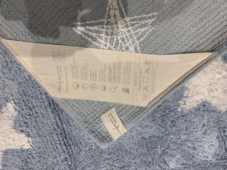 Alfombra de Lorena canals, azul con estrellas blancas. Se lava en la lavadora y secadora. Las medidas son 122 mm de ancho y 163,5 mm de largo. Es 100% algodón . El precio es por unidad , dispongo de 2 unidades. Se pueden comprar juntas o no.