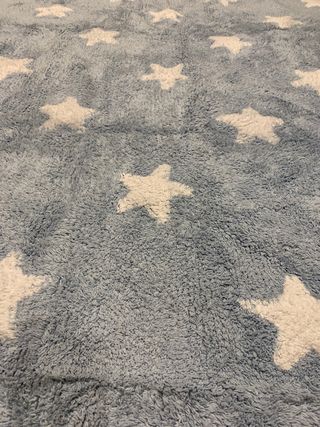 Alfombra de tela con un bonito diseño de estrellas en tonos azules y blancos. Perfecta para añadir un toque acogedor a cualquier habitación.se puede lavar en la lavadora. - Diseño de estrellas. - Tacto suave.
