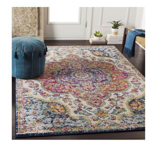 Alfombra estilo oriental rosa y multicolor