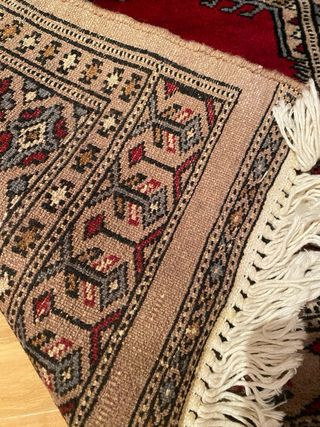 Alfombra Oriental de Bokhara de oracion Hecha totalmente a mano. Autentica pieza de artesania. Medidas 92 x 73 cm. A penas ha sido pisada. Practicamente nueva. Se escuchan Ofertas.