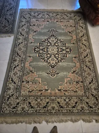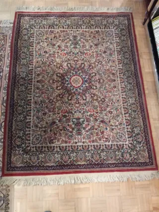 Se vende conjunto de dos alfombras de diseño clásico (Modelo Persia 826) en tonos beige, crema y granate. No son alfombras sintéticas baratas; son de 100% Pura Lana, lo que garantiza durabilidad, calidez y una limpieza mucho más sencilla. 📍 Medidas: 140 x 200 cm (Ideal para salón o bajo mesa de comedor). Precisan limpieza porque llevan mucho tiempo almacenadas. Precio individual 300 €, conjunto 550.