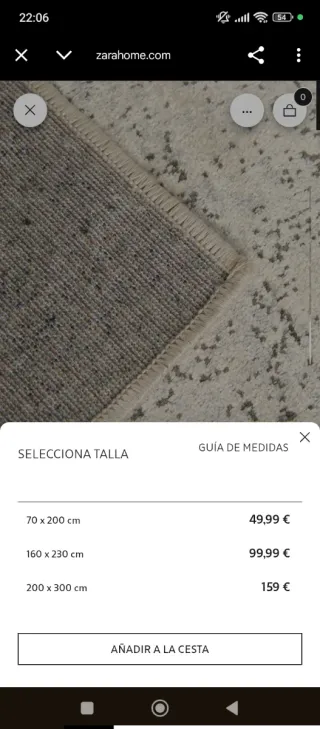 Alfombra de Zara Home completamente nueva, la compré para cuando mi piso estuviera reformado pensando que iba a encajar con la decoracion y al colocarla he visto que no me gusta como queda. No puedo devolverla al haber espirado el plazo de devolución.