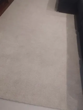 Alfombra de diseño moderno de 130x190 cm El color es blanco crema y está en perfecto estado sin manchas ni nada roto, ya que solo estuvo durante una semana puesta, está prácticamente nueva Costó 49 euros y la dejo en 18, te la quedas muy económica. Muy higiénica al ser de pelo corto Es alfombra "de verdad" con su base tejida debuena textura, no de estas blandas tipo toalla. Palabras clave Casa piso decoración mueble muebles salón comedor dormitorio habitación infantil despacho entrada pasillo sofá cama cojín cojines mesa armario silla escritorio sillas butaca mecedora Ikea jaja Conforama Zara home tocador