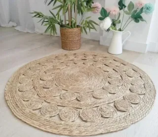 Alfombra Redonda Fibra Natural Estilo Boho-Nórdico