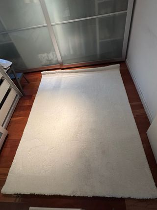 Alfombra de tela de color blanco. Su textura suave la hace muy acogedora. - Diseño moderno y minimalista. - Ideal para cualquier estancia del hogar. En Barcelona. Venir a recoger. No envío. No regateo. Gracias