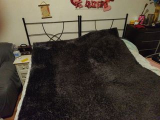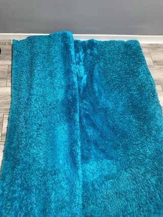 Preciosa alfombra de la marca NEPAL, en color turquesa. Es suave y mullida, ideal para añadir calidez a cualquier habitación. En muy buenas condiciones solo se uso para pie de cama durante un invierno - Medidas: 160x230 cm - Material: poliéster y fleece
