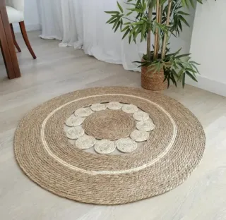 NUEVA!! Alfombra redonda de esparto natural 100% realizada a mano, estilo boho. Nueva a estrenar. Medida: Diámetro 80 cm. Medidas disponibles: Diámetro 60 cm: 14,99€ Diámetro 80 cm: 18,99€ Diámetro 100 cm: 22,99€ Diámetro 120 cm: 26,99€ Realizo envíos 🚚 Más modelos en mi perfil 🌺 Decoración, eventos, celebraciones, bodas, comunión, cestas, cestos, maceteros, leñeros, banco, banquito, taburete, puff, silla, alfombras, felpudos, sala de estar, salón, cocina, dormitorio de Zara Home, Ikea, Leroy Merlín, H&M, Sklum, Maison du Monde, Loja do Gato, Muy Mucho, material madera, fibra, yute, mimbre, bambú, algodón, estilo boho