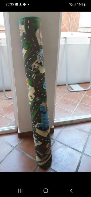 Alfombra de juegos STORABO de IKEA, con diseño de carreteras, rotondas y zona urbana. Ideal para que los niños jueguen con coches, trenes u otros juguetes. 🚗 Diseño con calles, aparcamientos, paso de cebra, rotondas y edificios 📏 Medidas: 133 × 75 cm 🧼 En buen estado, sin manchas ni roturas 🧸 Antideslizante por debajo — se adapta a suelos duros o moqueta 🌿 Fácil de enrollar y guardar Perfecta para habitaciones infantiles o zonas de juegos. Entrega en mano o envío a cargo del comprador.