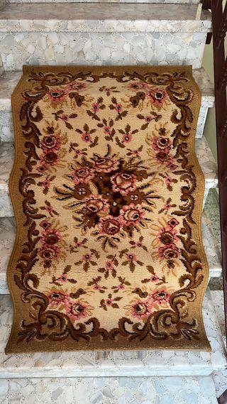 Alfombra hecho a mano es muy bonita y pesa poco ,medidas 1,60x1,16..