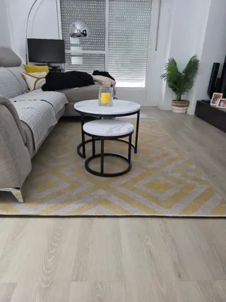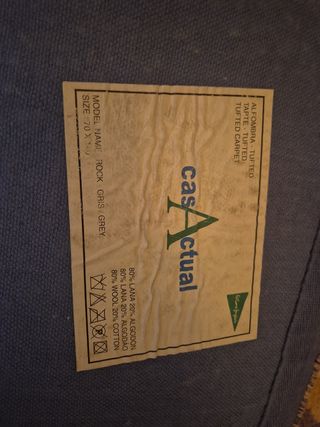 Alfombra suave y acogedora con un acabado que imita la lana. - Textura agradable al tacto. - Diseño moderno y versátil. Con un pequeño desperfecto como se aprecia en la foto