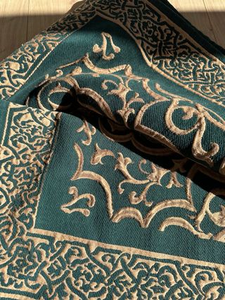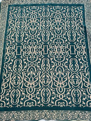 Se venden dos alfombras de gran tamaño con un diseño tejido. - Medidas: 230 x 160 cm cada una. - Diseño con motivos florales en hilo oscuro. - La de color granate no se ha vuelto a usar desde que se mandó a limpiar -50 euros la unidad