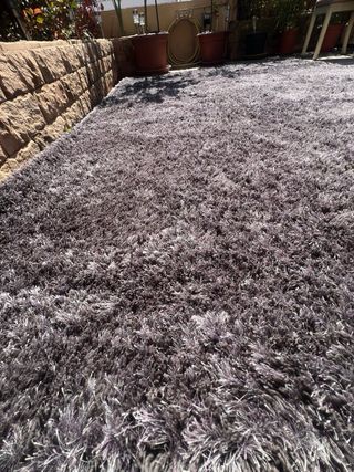 De pelo largo, 2,9 x 2 m. Muy bonita. No está manchada, es según pongas el pelo.