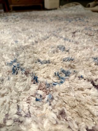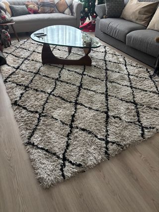 Alfombra de tejido con un diseño moderno y texturizado. Muy poco usado pero con un mancha (último foto). Solo en persona.