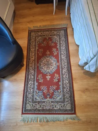 Vendo alfombra de estilo clásico/oriental, medidas 120 cm (alto) × 76 cm (ancho). 🔹 Diseño tradicional con colores vibrantes (predomina rojo, verde y detalles oscuros). 🔹 En muy buen estado (si aplica) o mencionar detalles claros si hay desgaste leve. 🔹 Ideal para entrada, dormitorio, salón o pasillo pequeño. 🔹 Material suave y resistente al uso diario. 🔹 Perfecta para dar un toque cálido y decorativo al hogar. 📏 120×76 cm